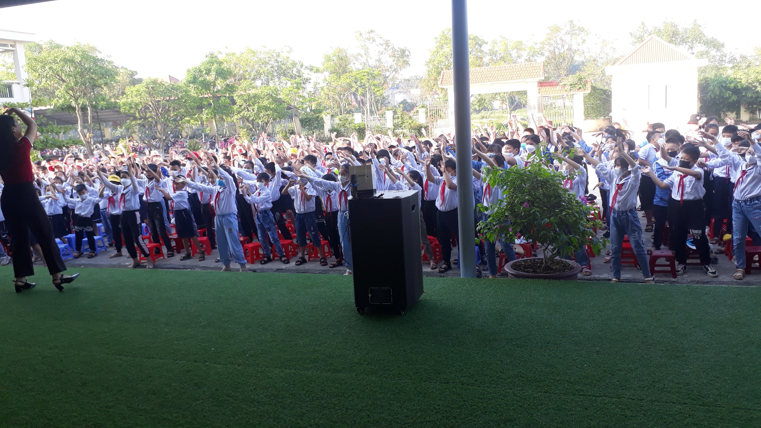 Học sinh Trường Tiểu học Du Lễ tham dự buổi tuyên truyền.